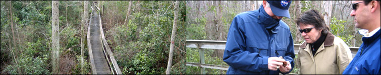 Dr. Hurtt and Dr. Rock were accompanied by Dr. Stephen Hale, Dr. Karen Graham, and Mr. Devoe Levine-Leung of UNH. The day started out with a survey of the local waters aboard the LH Viking. This survey was taken to identify various points at which samples would be taken for summer research. The following day the group spent time in the Dismal Swamp touring the ECSU Boardwalk with Dr. Francisco San Juan, chair of the GEMS department. Mr. Levine-Leung and the other UNH representatives met with ECSU faculty to discuss expanding UNH/ECSU partnerships on the graduate level. Photos of this luncheon can be viewed here.